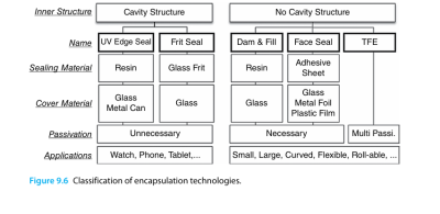Since OLED devices are really sensible to moisture and oxygen, encapsulation process is really important to maintain a long lifetime. The are multiple encapsulation technologies :